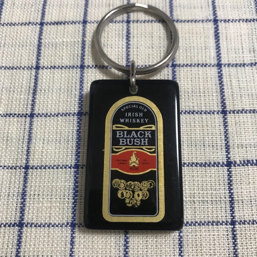アイリッシュウイスキー、ブラックブッシュのもので、黒がベースにゴールドのラベルがクールです。