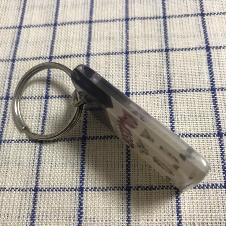 美しいアクリルのの間に挟まれた、発色が良いイラストと大きなリングがこの時期のブルボンキーホルダーの特徴です。
