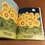 ドナルド・クルーズ独特の大胆なイラストで、ひまわりが咲いてタネを鳥たちがついばみ、運んでさらに咲いていくまでを描いています。