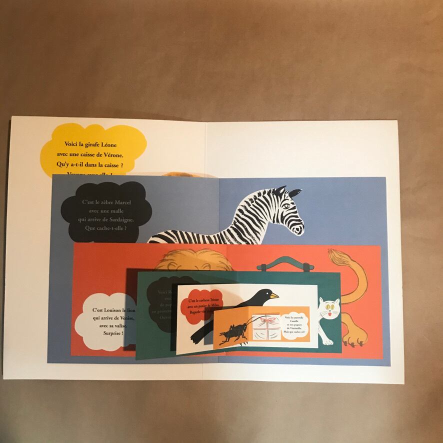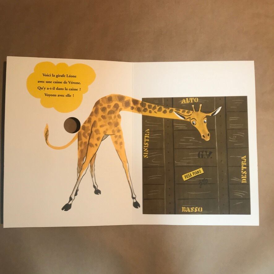 ヴェローナから運ばれるキリンが、木箱の箱をノックすると、中からシマウマが現れて…。