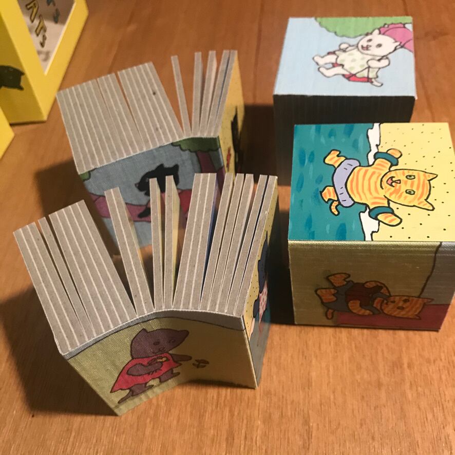 それぞれの絵本は黒猫、白猫、灰色猫、トラ猫が主人公で、厚手の紙に印刷さらています。