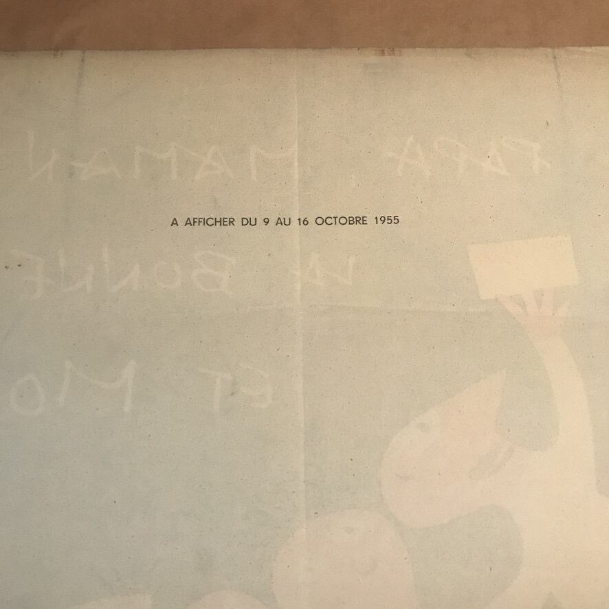端に小さな折れや、フランスのポスターは折って通常折って保存するため、折れ線等がありますが、年代にしては良い状態だと思います。