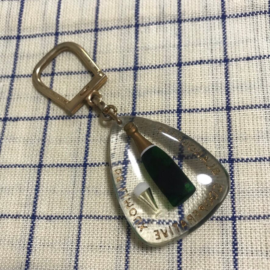 60年代フランス ブルボンキーホルダー BLANQUETTE COOPERATIVE シャンパンとグラス